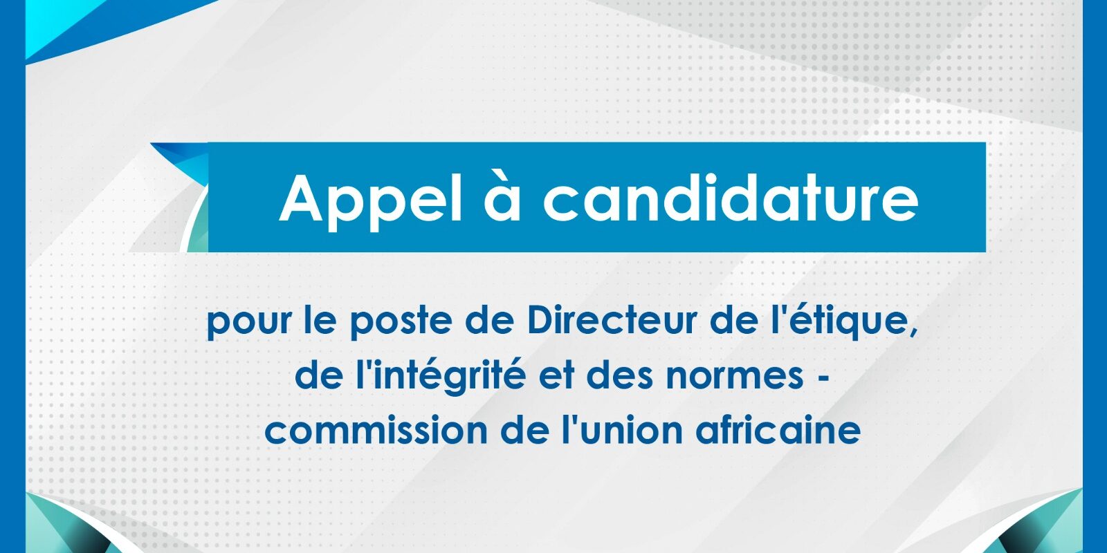 La Commission de l’Union Africaine a lancé un appel à candidature pour le poste de Directeur de l’étique, de l’intégrité et des normes – commission de l’union africaine, basé à ADDIS-ABEBA ETHIOPIE, Voir l’avis suivant